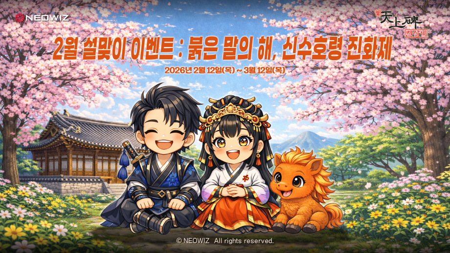 [2026-02-05] ㈜네오위즈(공동대표 김승철, 배태근)는 다가오는 민족 대명절 설날을 맞아 자사 인기 게임 7종이 풍성한 혜택을 담은 이벤트를 진행한다고 5일 밝혔다.
