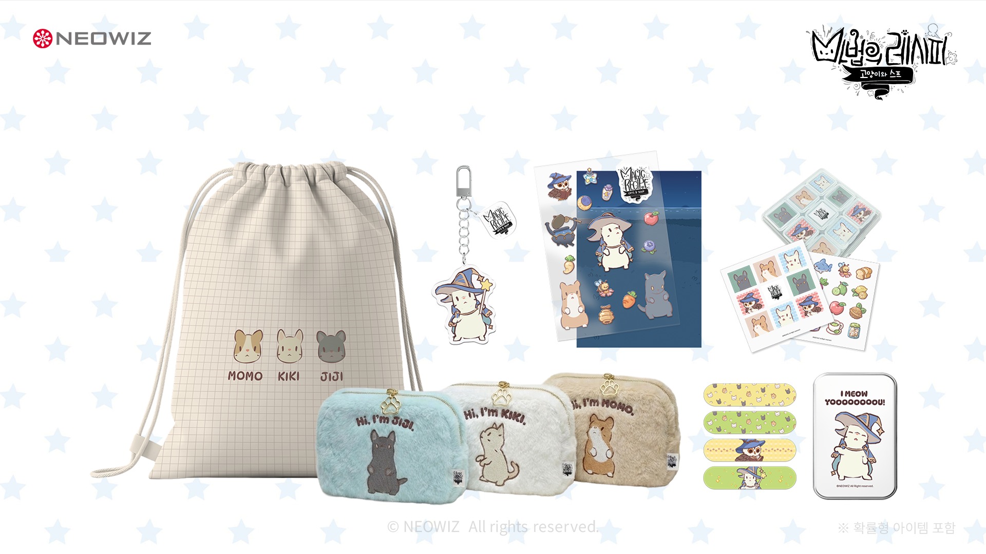 이번 굿즈는 ‘고양이와 스프: 마법의 레시피’의 첫 공식 굿즈로, 메인 캐릭터 ‘키키’가 ‘마법의 레시피’를 찾기 위해 여정을 떠난다는 콘셉트로 기획됐다. ‘키키의 여행 필수템’이라는 테마 안에서 이용자들이 일상에서도 활용할 수 있는 실용적인 아이템 중심으로 구성된 것이 특징이다. 이번 펀딩을 통해 원작 특유의 따뜻하고 아기자기한 감성을 담은 △스트링백 △파우치 3종 △아크릴 키링 등 다양한 굿즈를 만나볼 수 있다.